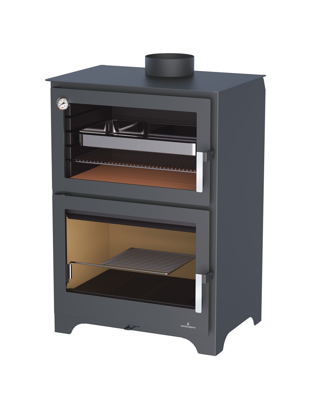 Chimenea y horno creada para entregarle el máximo calor con el mínimo consumo de leña y un atractivo diseño en el que podrá elaborar deliciosas recetas y disfrutar el encanto del fuego por muchos años. Con gran visual del fuego, un diseño moderno y un gran espacio para hornear, esta chimenea promete una combustión de leña óptima para disfrutar en casa de un calor sano, agradable y económico. Convierta esta pieza en un objeto de decoración con la tecnología más avanzada y de vanguardia. Ideal para salas y casas de gran tamaño, cocinas, terrazas cubiertas, apartamentos o cabañas.