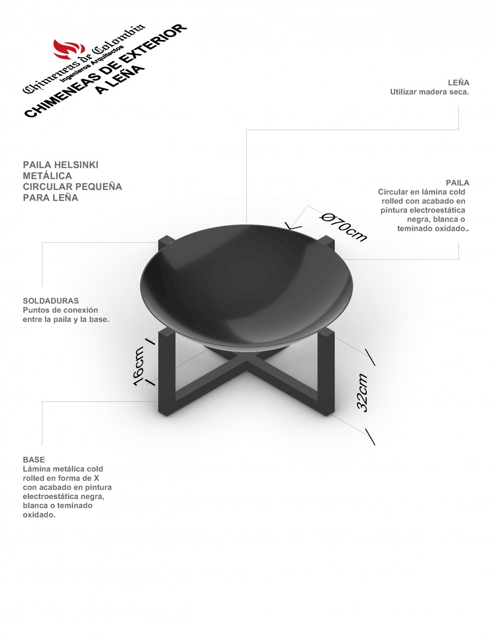 Paila para Fogata a leña en lamina Helsinki Pequeña