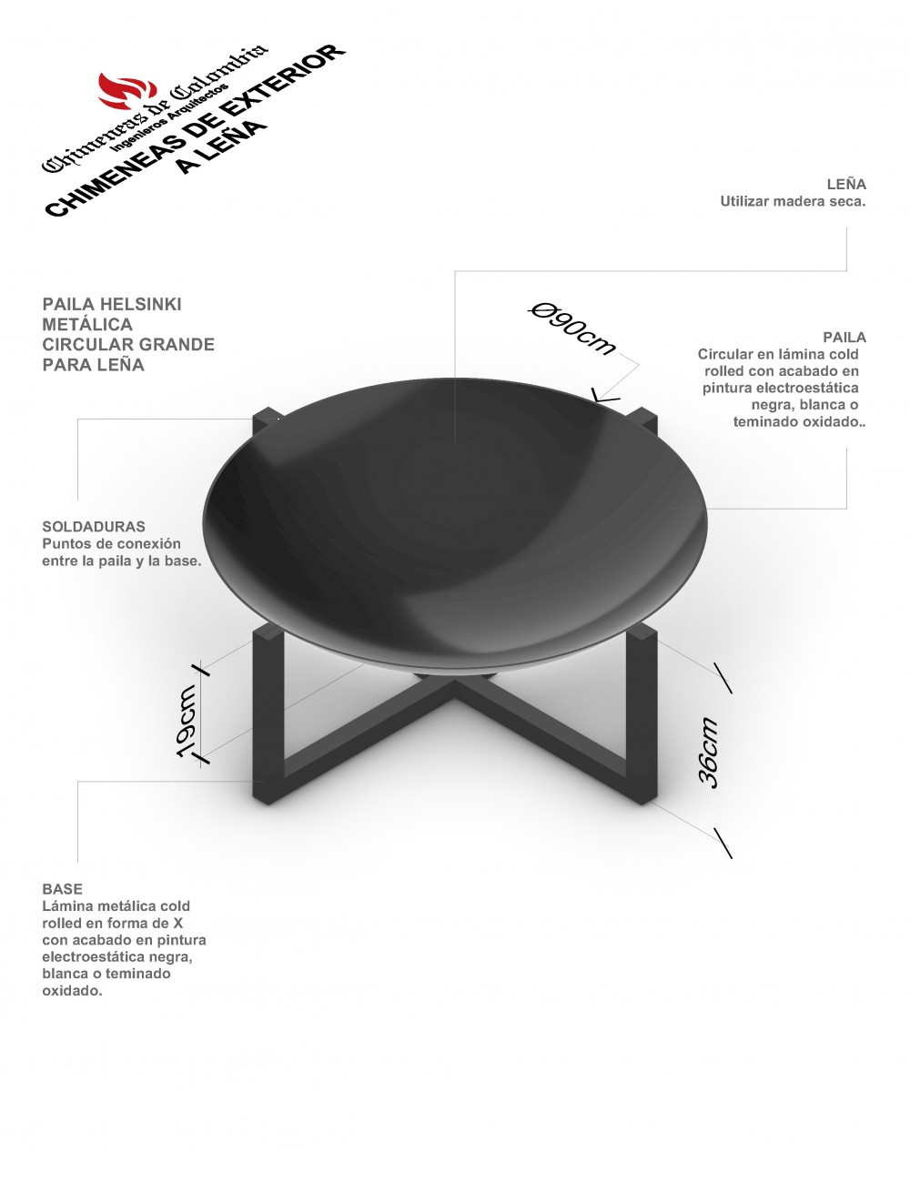 Esta pieza de diseño moderno con una profundidad perfectamente calculada, permite crear fogatas de leña de gran tamaño con gran potencia calorífica, gracias a su lámina de acero de 5mm de espesor de alta resistencia. Es ideal para usar sobre el prado o casi cualquier superficie en el exterior, su base en tubos metálicos le da una gran resistencia y estabilidad, aislando el calor de las superficies ,generando así un ambiente cálido y acogedor de manera segura y eficiente.