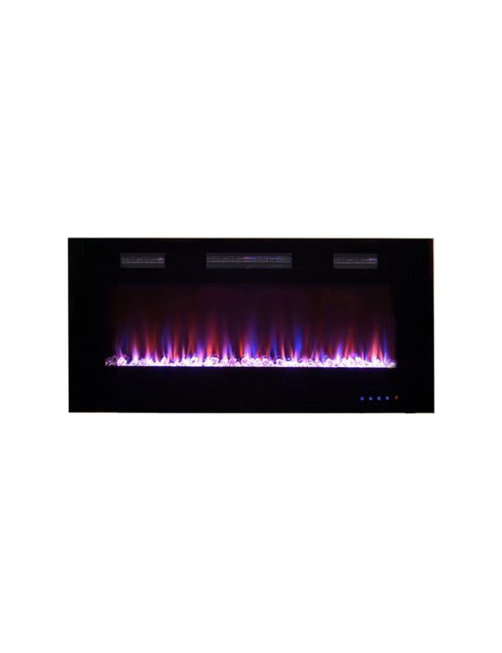 Esta chimenea cuenta con un sistema de calefacción de alta potencia y un diseño sin igual que proporcionan un estilo brillante y distinguido, es perfecta para utilizar de día o de noche gracias a su panel led que permite graduar la intensidad del efecto del fuego, así como los tonos de la llama (naranja, amarillo, azul o combinado). Su efecto de llama lineal, su marco en vidrio frontal rectangular y sus brasas decoradas con cristales transparentes, proporciona un diseño elegante y sofisticado.