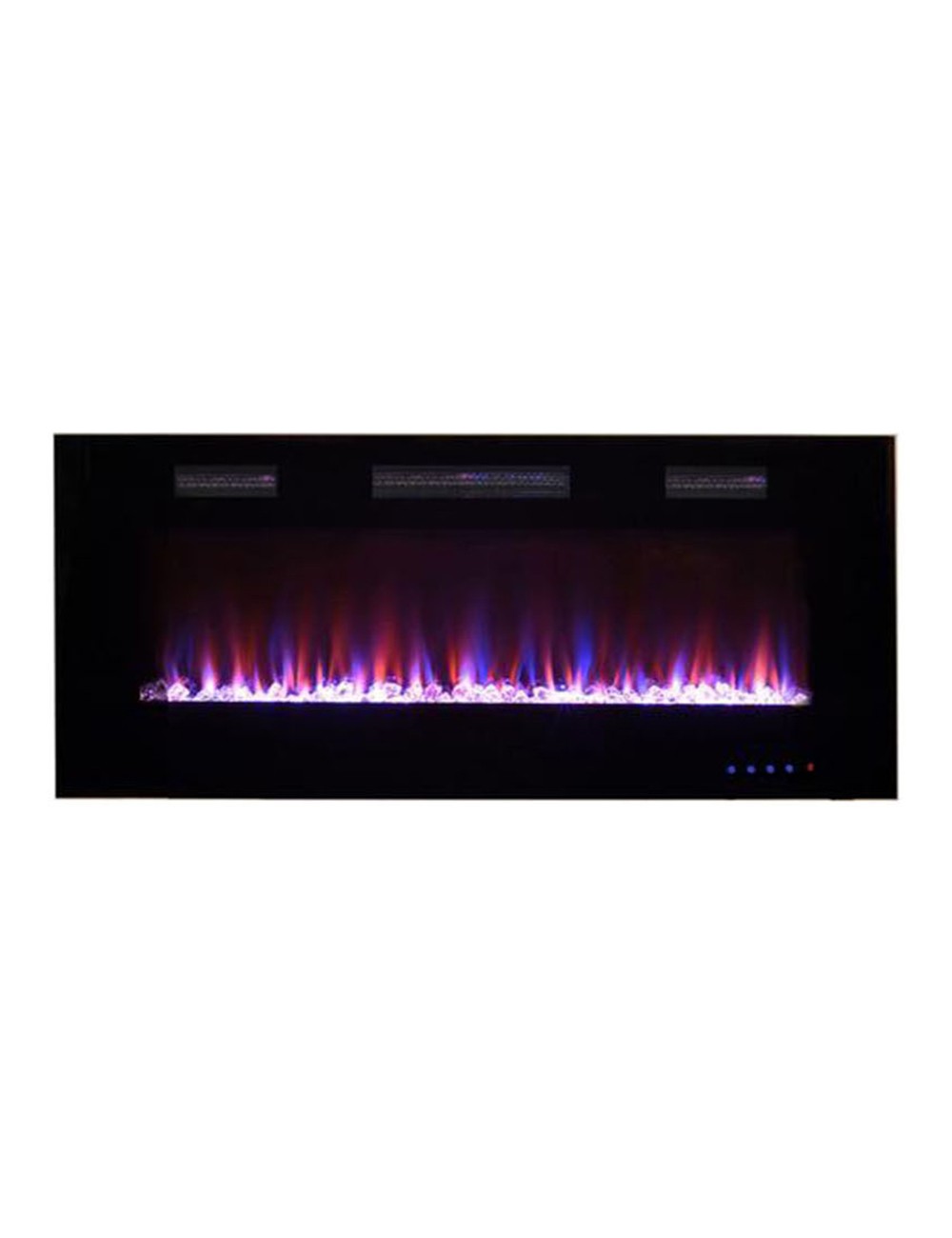 Esta chimenea cuenta con un sistema de calefacción de alta potencia y un diseño sin igual que proporcionan un estilo brillante y distinguido, es perfecta para utilizar de día o de noche gracias a su panel led que permite graduar la intensidad del efecto del fuego, así como los tonos de la llama (naranja, amarillo, azul o combinado). Su efecto de llama lineal, su marco en vidrio frontal rectangular y sus brasas decoradas con cristales transparentes, proporciona un diseño elegante y sofisticado.