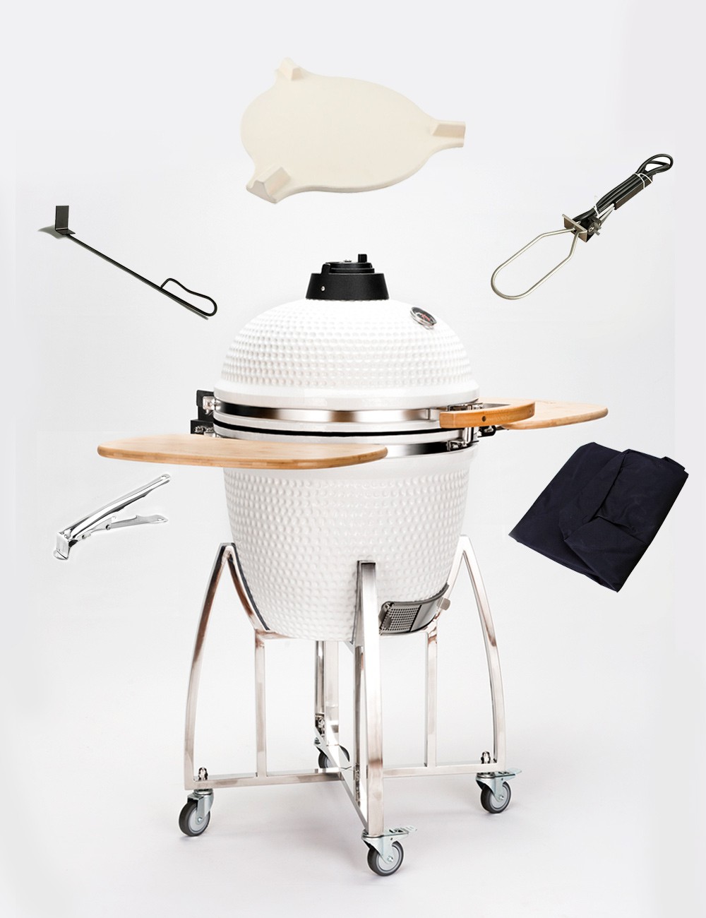 Diseñados para funcionar con carbón, construidos con materiales cerámicos de alta calidad y resistencia, son ideales para asar, hornear y ahumar. Su moderno diseño y variedad de colores se adapta a todos los estilos. Se destaca por su versatilidad al ser portátil y tener múltiples opciones de uso. Sácale el máximo provecho a tu kamado con este combo de herramientas infaltables para tus preparaciones.